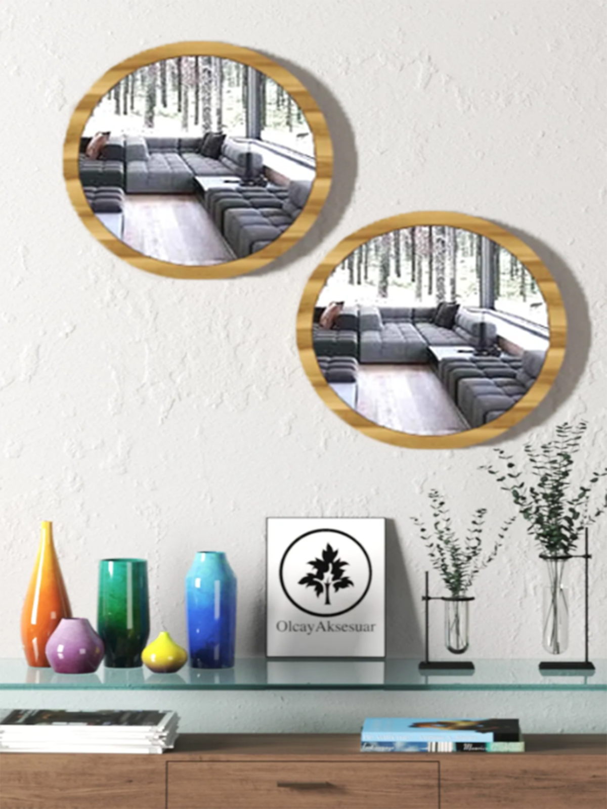 2'Lİ DEKORATİF 60 CM 2 ADET KOYU CEVİZ DUVAR AYNASI WC HOL ANTRE ODA KONSOL AYNASI 60 CM