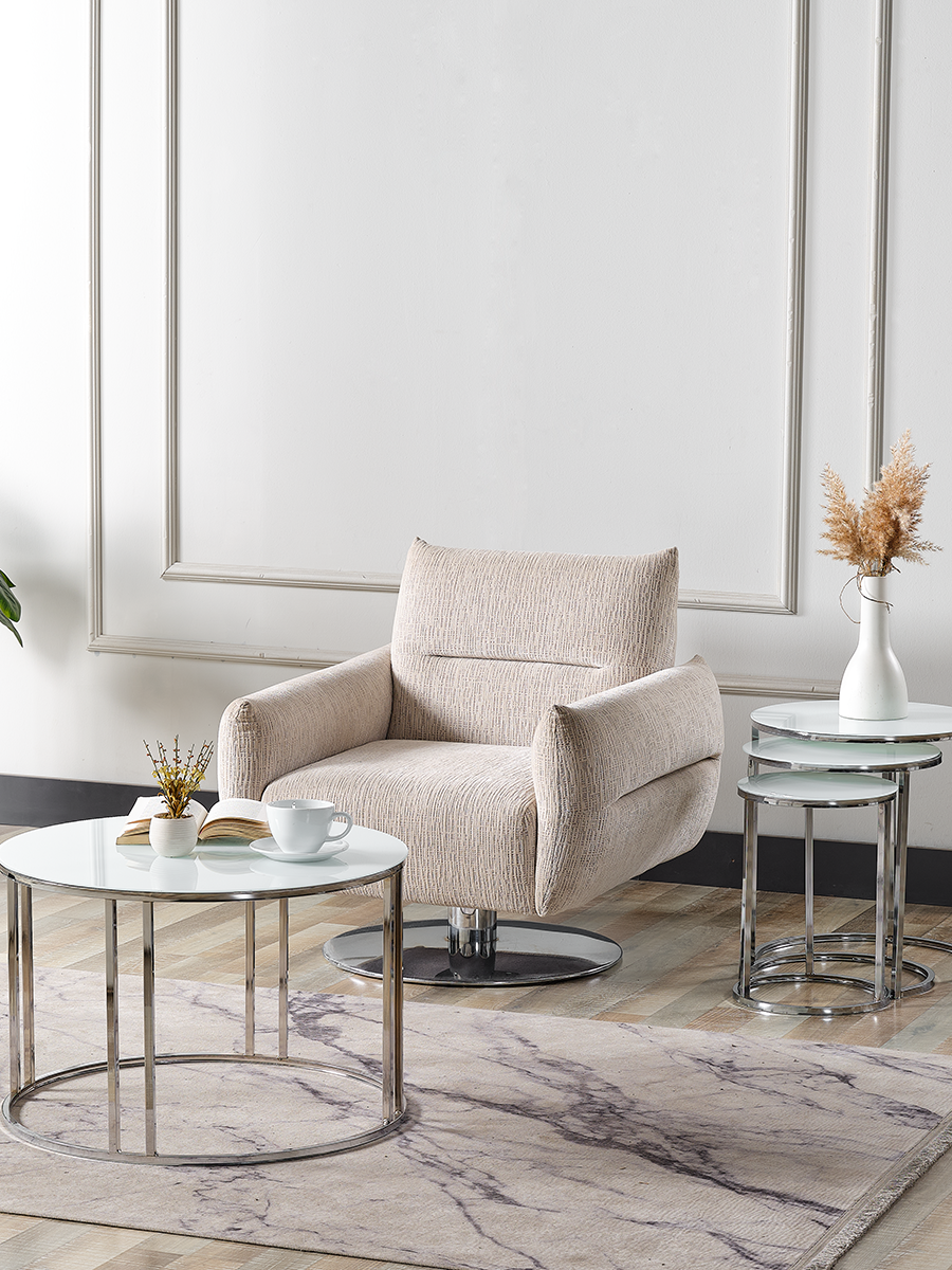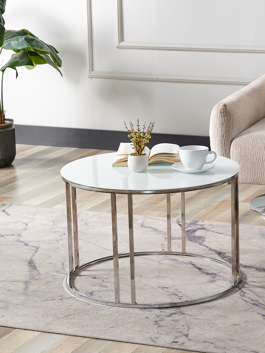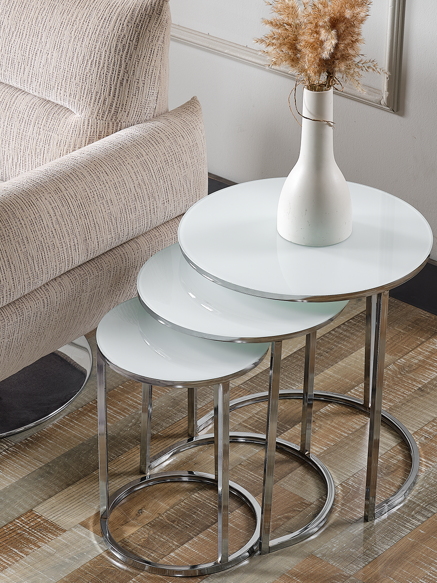 3 'Lü Zigon Ve Orta Beyaz Cam Nikel Ayak Sehpa Takımı