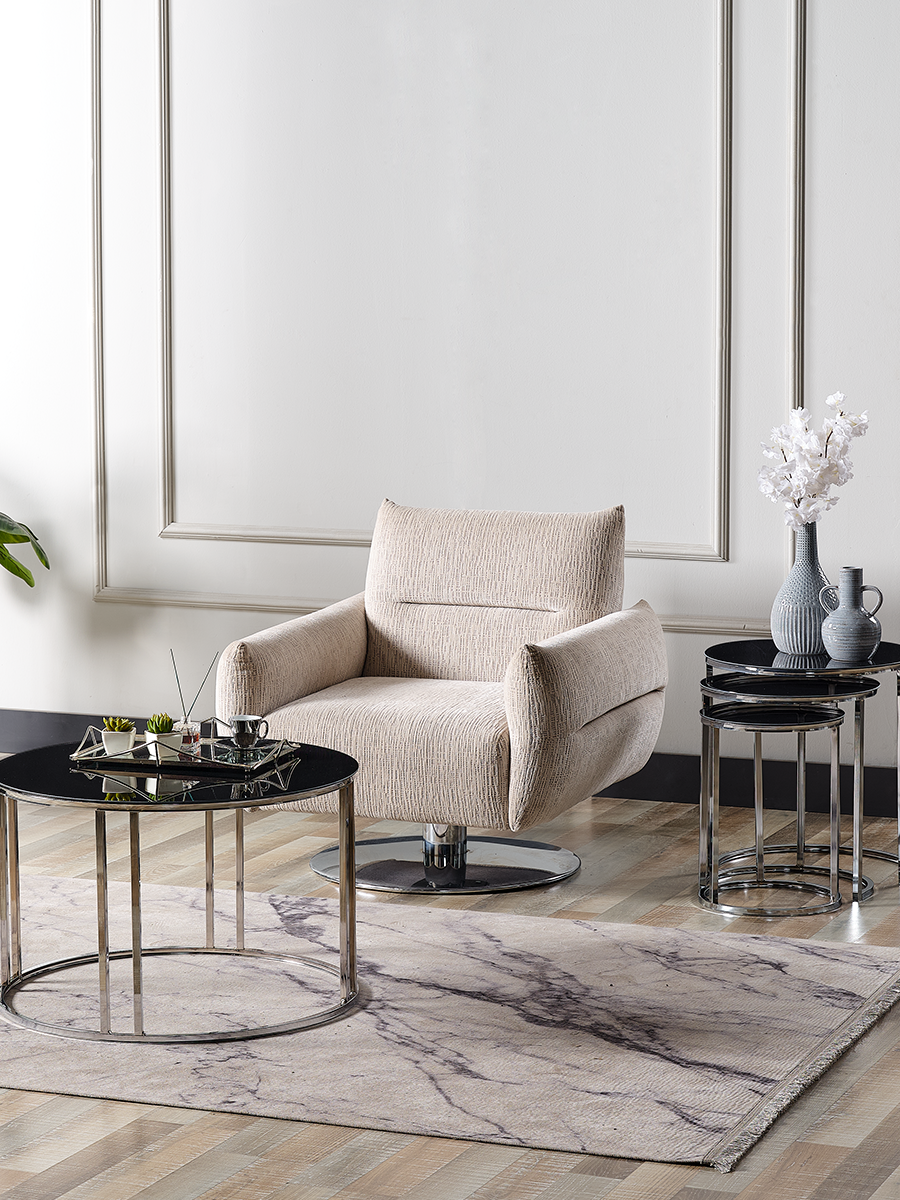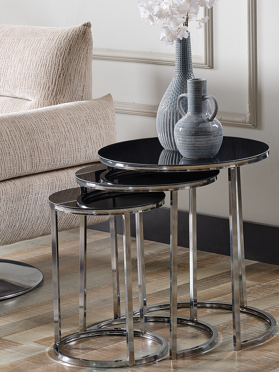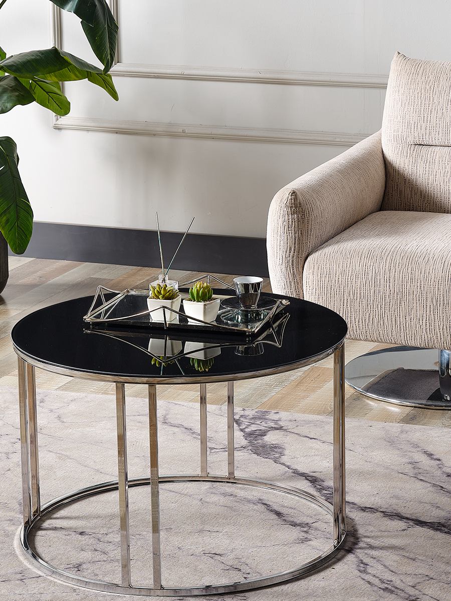 3 'Lü Zigon Ve Orta Siyah Cam Nikel Ayak Sehpa Takımı