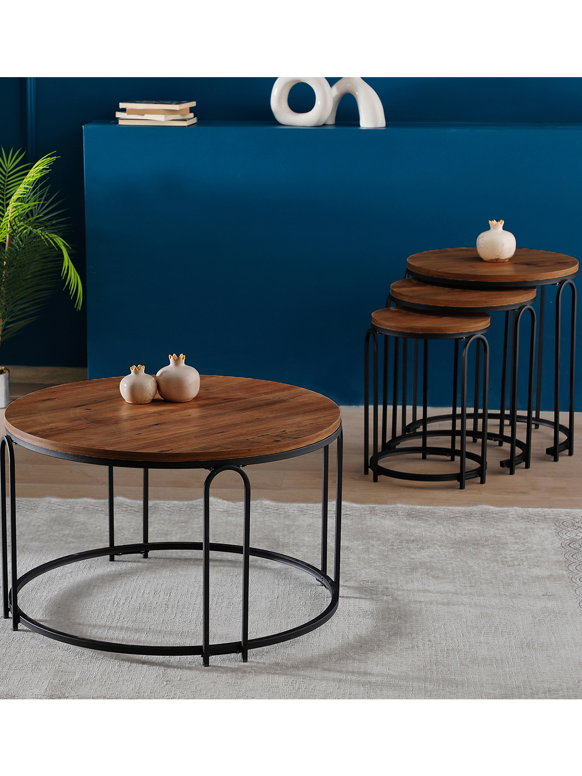 Lenka Koyu Ceviz Ahşap Zigon Orta Sehpa Takımı Yuvarlak Siyah Metal 3+1 - lenka-zigonorta-siyah LTKM-003, one size