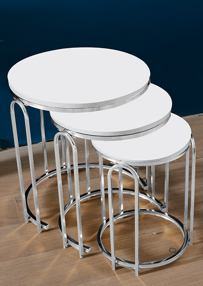 3' LÜ BEYAZ AHŞAP NİKEL (GÜMÜŞ) AYAK LENKA METAL SEHPA LZS-001, one size