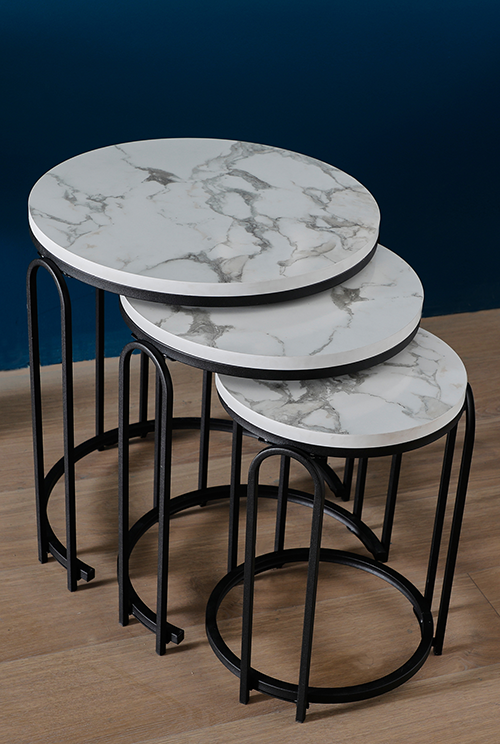 3' LÜ BEYAZ MERMER AHŞAP SİYAH (STATİK) AYAK LENKA METAL SEHPA TAKIMI sedaş-zigon-sehpa LZS-003, one size
