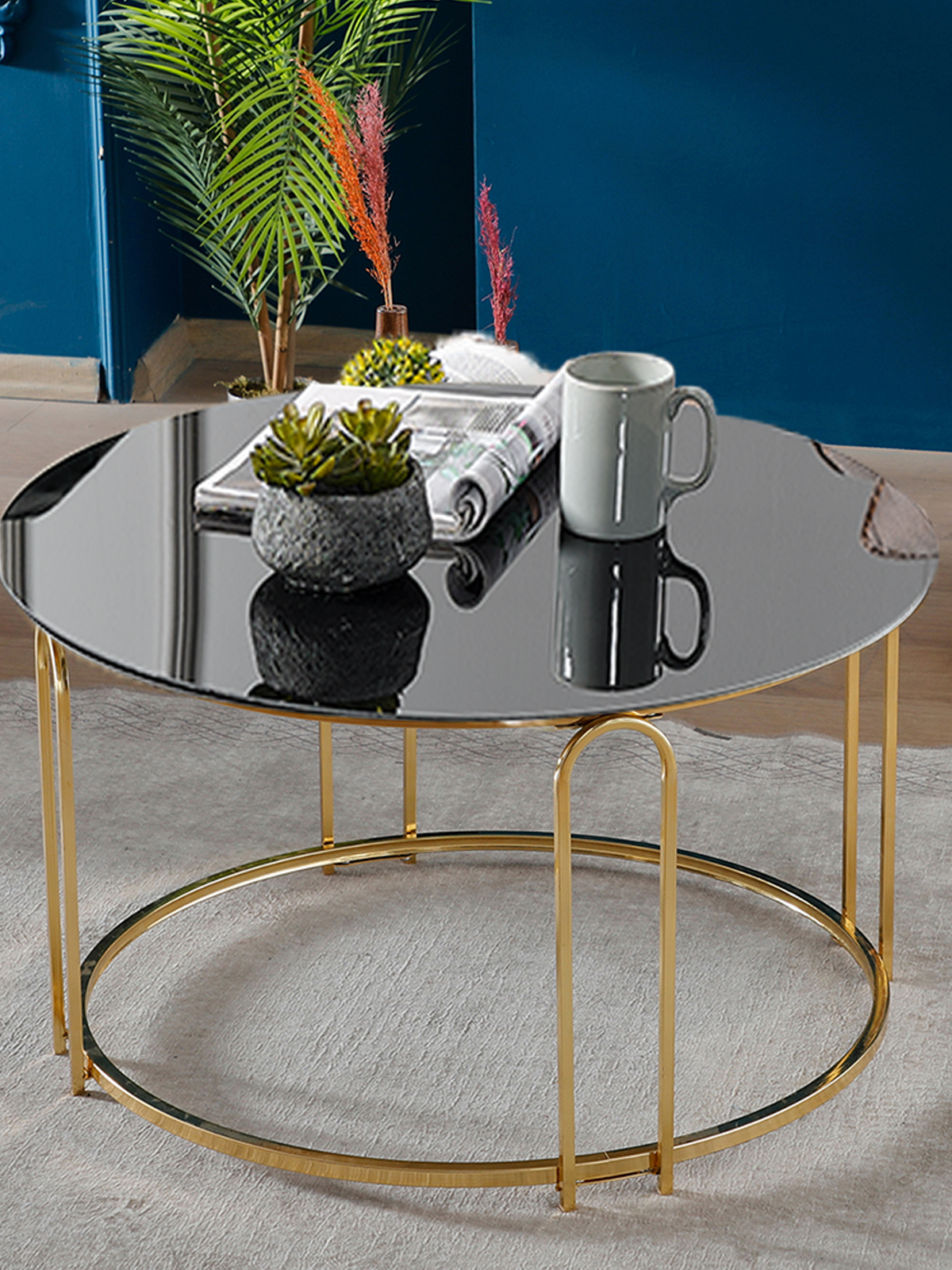Lenka Orta Sehpa Yuvarlak Siyah Temperli Cam Gold Metal - Sedaş-Lenka-Orta-Gold