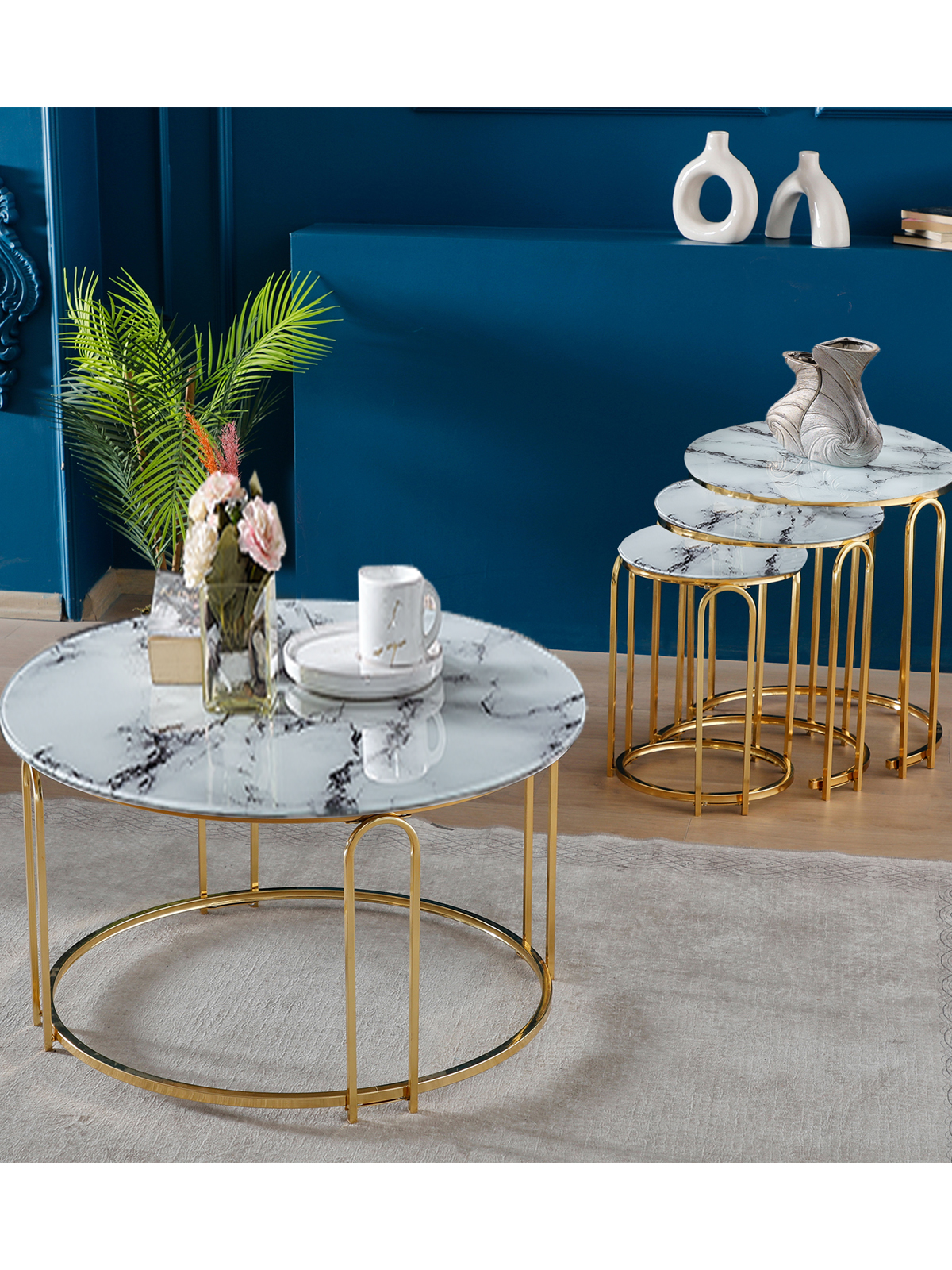 Lenka Zigon Orta Sehpa Takımı Yuvarlak Gold Metal 3+1 - Beyaz Mermer sedaş-lenka-zigon-orta-gold LTKM-002, one size