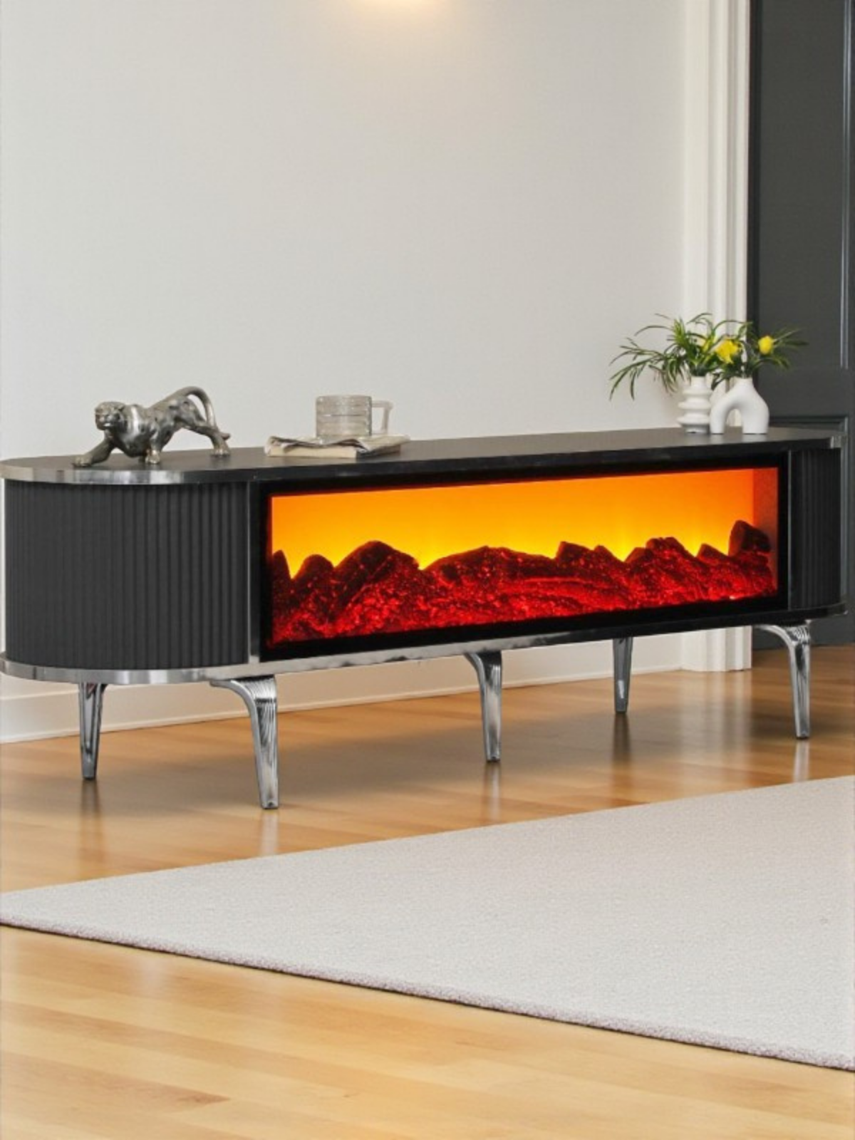 Tv Ünitesi Şömineli Antrasit Gümüş Ayak Bluetooth Ve Hoparlörlü Kumandalı 160 Cm şöminetv-003, one size